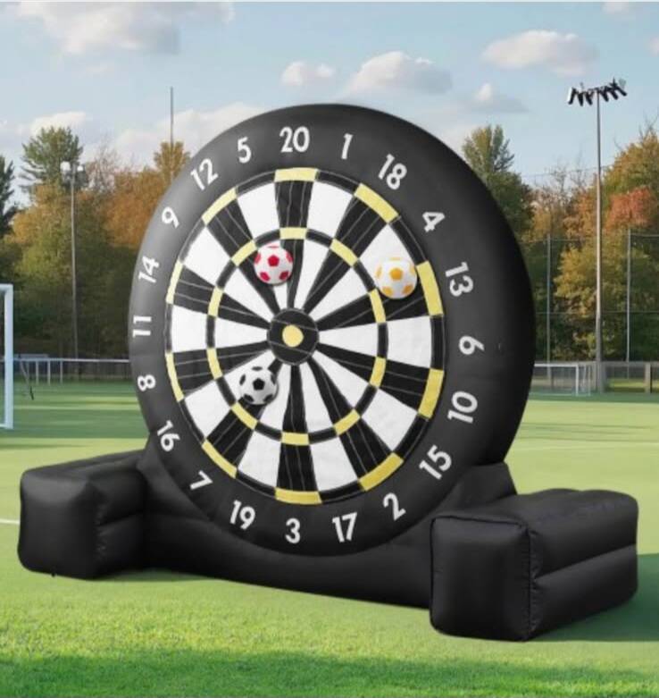 Un mélange parfait entre le soccer et le jeu de fléchettes géant. Idéal pour petits et grands, en famille ou entre amis.